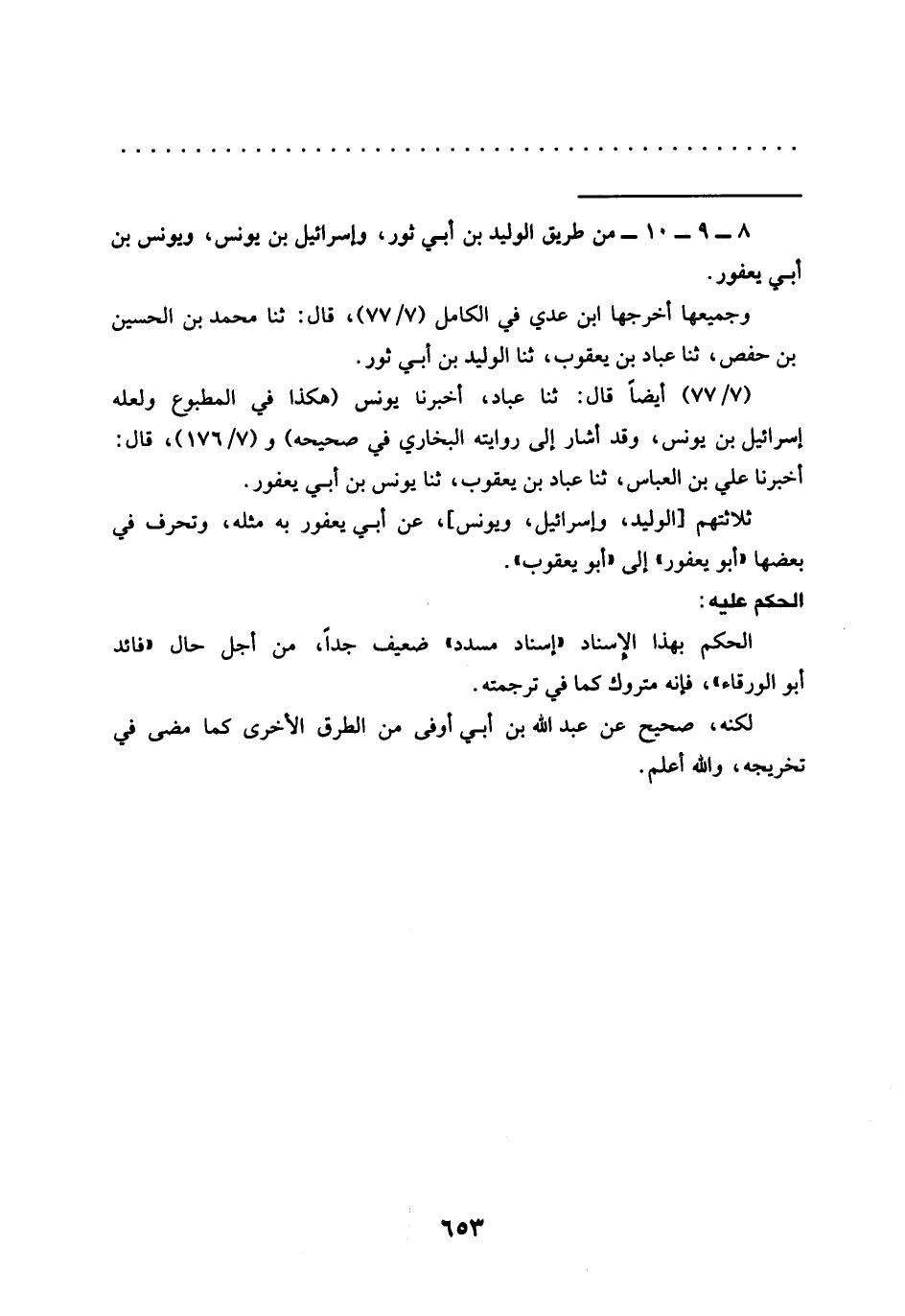 = 8 - 9 - 10 - من طريق الوليد بن أبي ثور، وإسرائيل بن يونس، ويونس بن أبي يعفور.