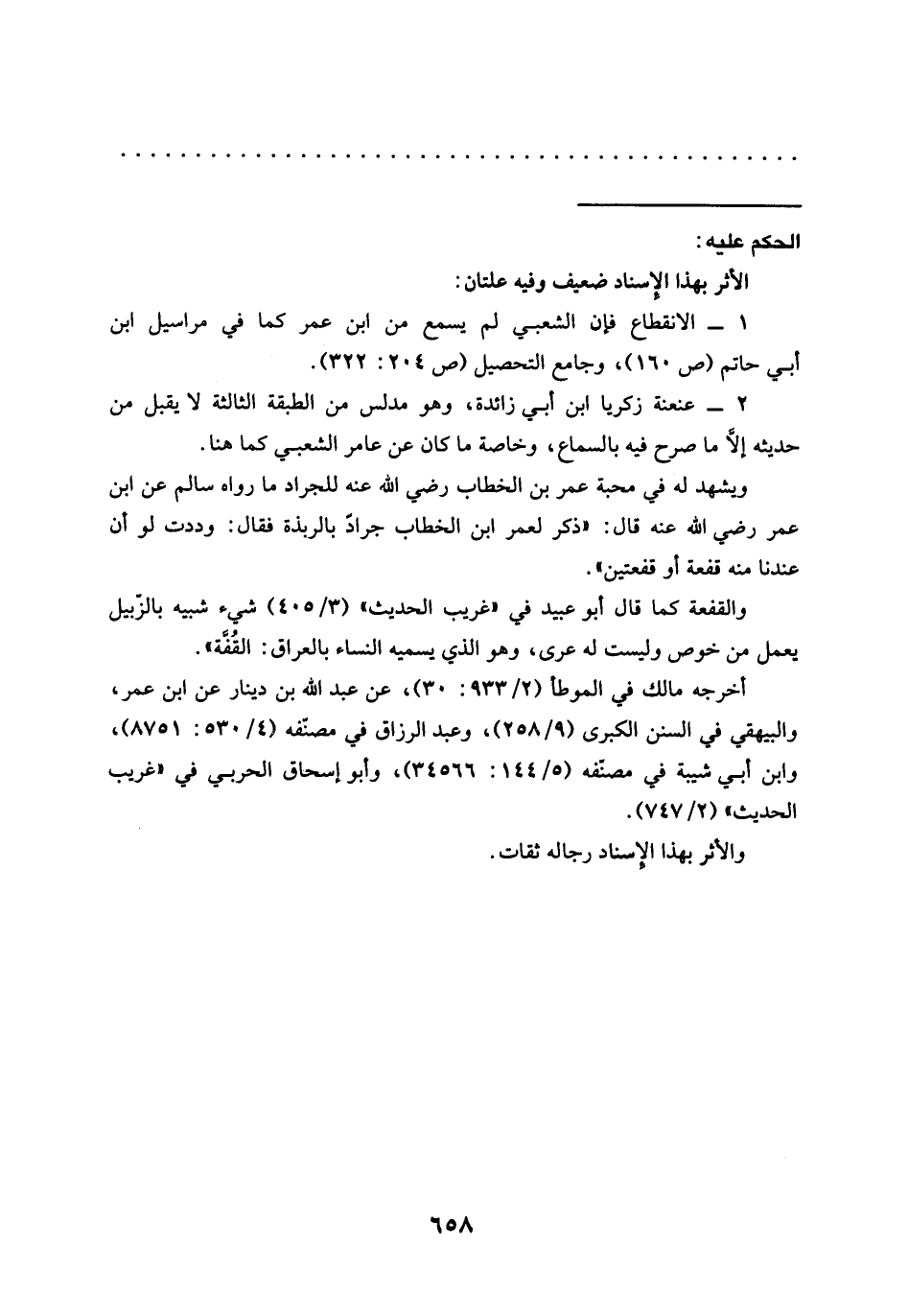 1 - الانقطاع فإن الشعبي لم يسمع من ابن عمر كما في مراسيل ابن أبي حاتم (ص 160)، وجامع التحصيل (ص 204: 322).