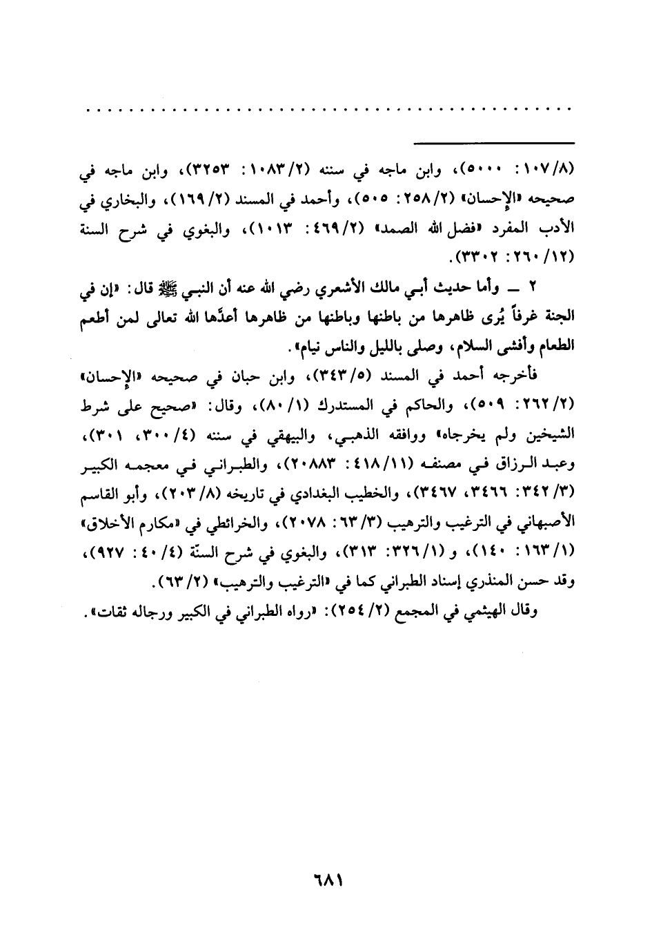 = (8/ 107: 5000)، وابن ماجه في سننه (2/ 1083: 3253)، وابن ماجه في صحيحه "الإحسان" (2/ 258: 505)، وأحمد في المسند (2/ 169)، والبخاري في الأدب المفرد "فضل الله الصمد" (2/ 469: 1013)، والبغوي في شرح السنة (12/ 260: 3302).