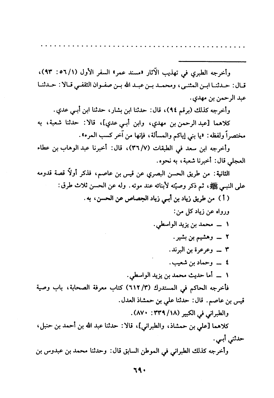 الثانية: من طريق الحسن البصري عن قيس بن عاصم، فذكر أولًا قصة قدومه عَلَى النَّبِيِّ -صَلَّى اللَّهُ عَلَيْهِ وَسَلَّمَ-، ثُمَّ ذكر وصيّته لأبنائه عند موته. وله عن الحسن ثلاث طرق: