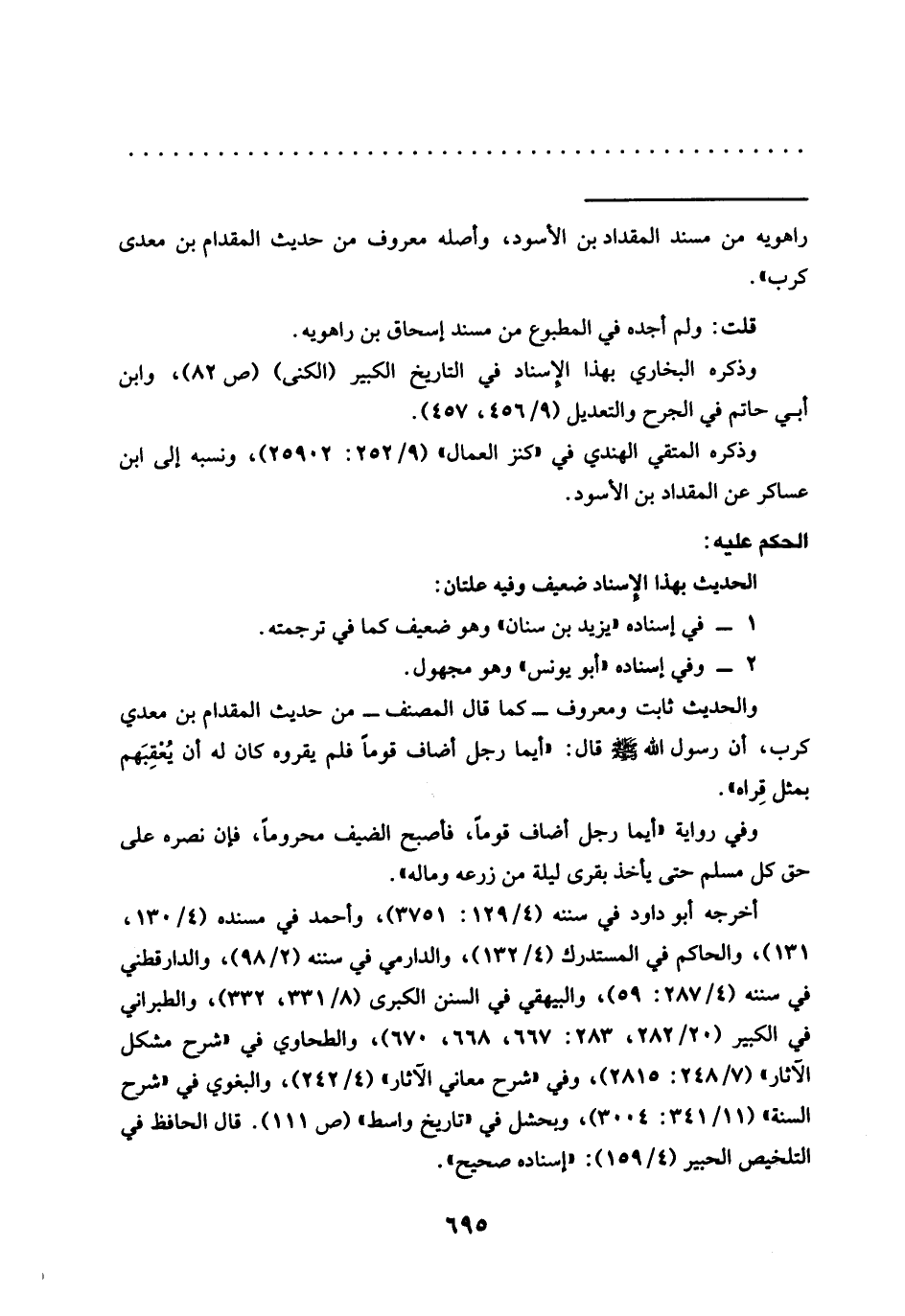 = راهويه من مُسْنَدِ الْمِقْدَادِ بْنِ الْأَسْوَدِ، وَأَصْلُهُ مَعْرُوفٌ مِنْ حديث المقدام بن معدى كرب".