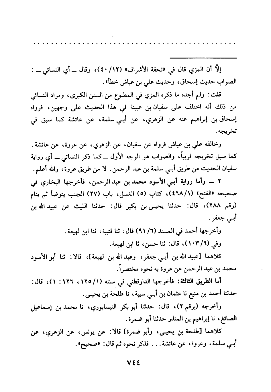 قلت: ولم أجده ما ذكره المزي في المطبوع من السنن الكبرى , ومراد النسائي من ذلك أنه اختلف على سفيان بن عيينة في هذا الحديث على وجهين، فرواه إسحاق بن إبراهيم عنه عن الزهري، عن أبي سلمة، عن عائشة كما سبق في تخريجه.