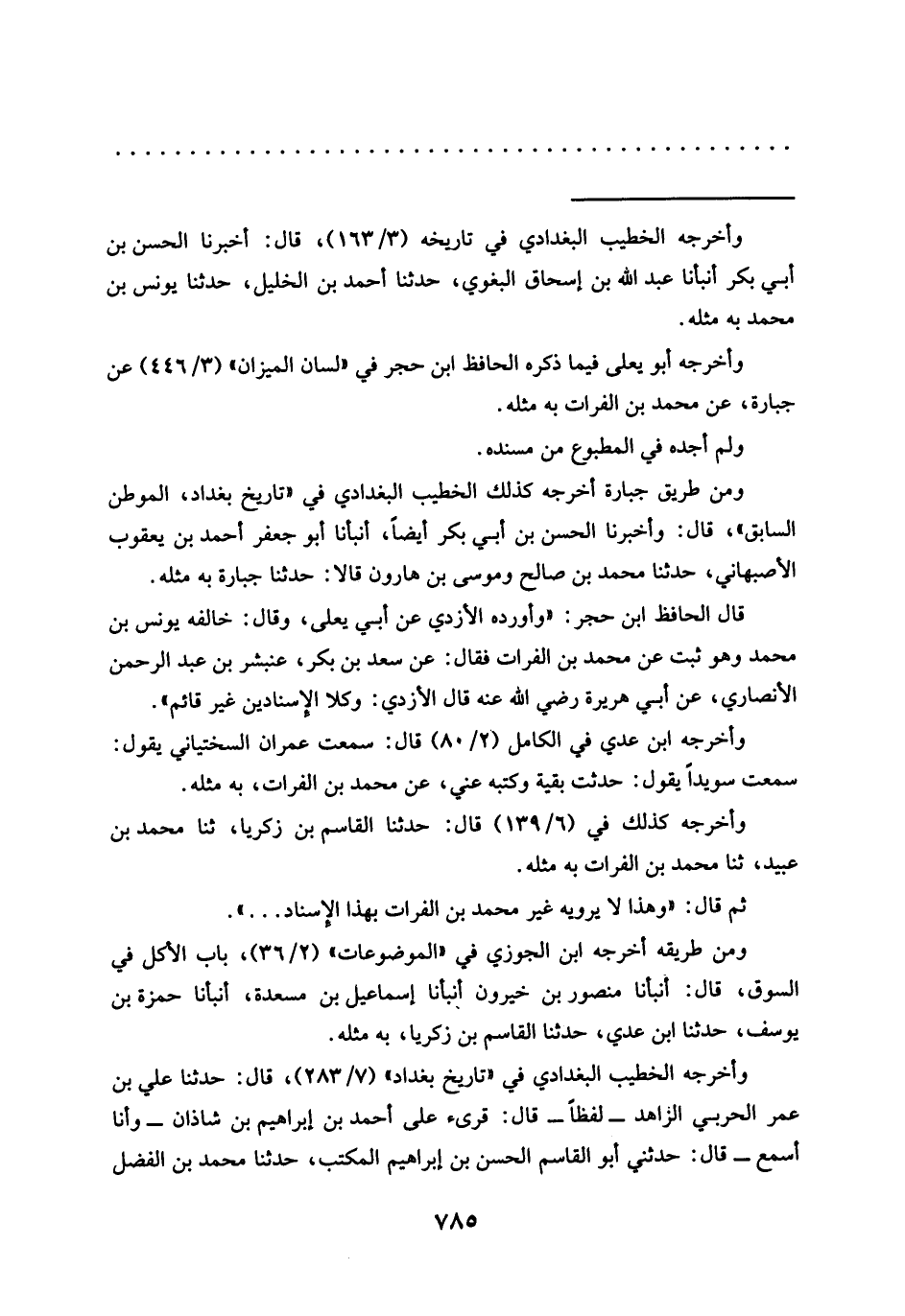 ومن طريق جبارة أخرجه كذلك الخطيب البغدادي في "تاريخ بغداد، الموطن السابق"، قال: وأخبرنا الحسن بن أبي بكر أيضًا، أنبأنا أبو جعفر أحمد بن يعقوب الأصبهاني، حدّثنا محمَّد بن صالح وموسى بن هارون قالا: حدّثنا جبارة به مثله.