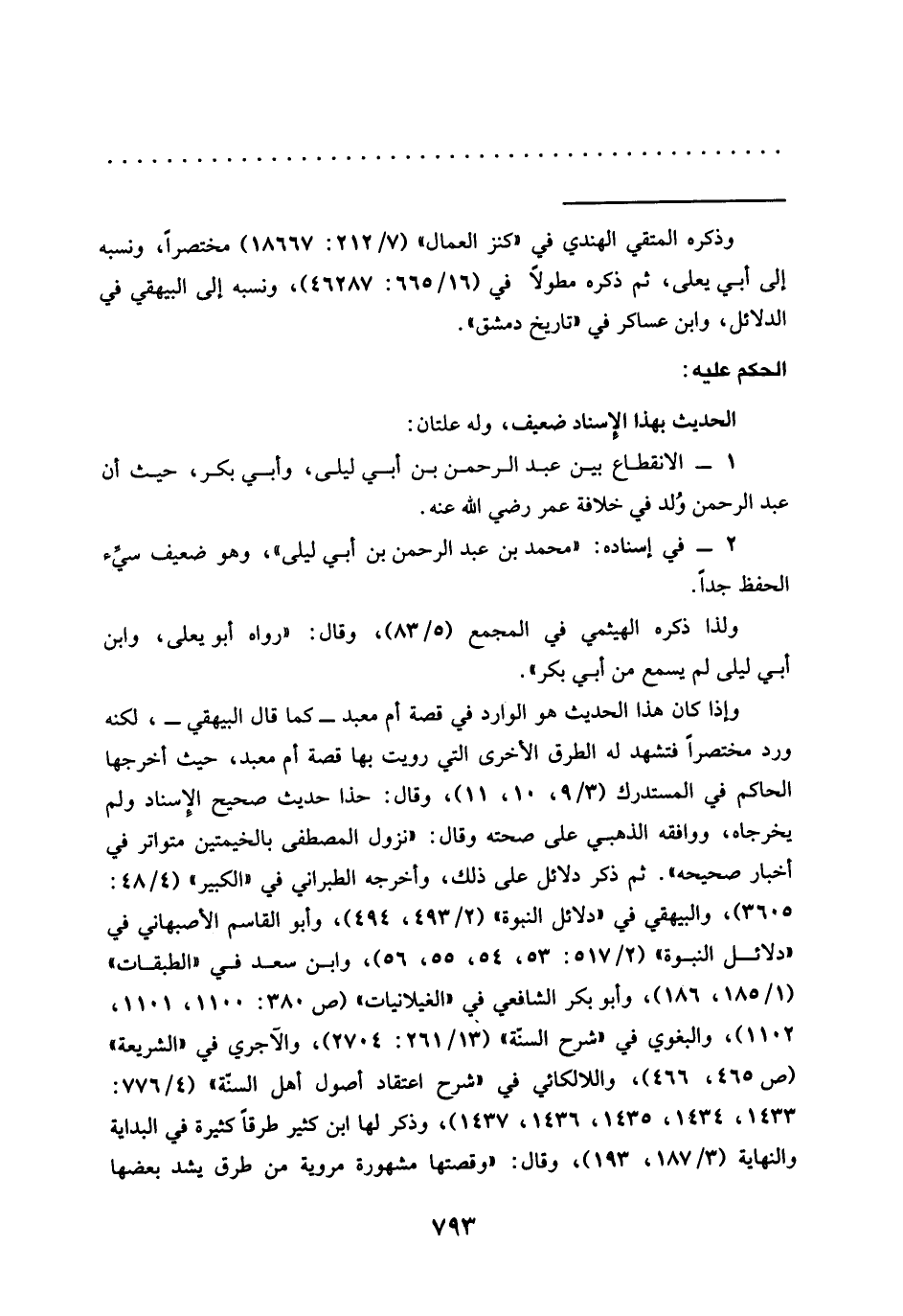 1 - الانقطاع بين عبد الرحمن بن أبي ليلى، وأبي بكر، حيث أن عبد الرحمن وُلد في خلافة عمر رضي الله عنه.