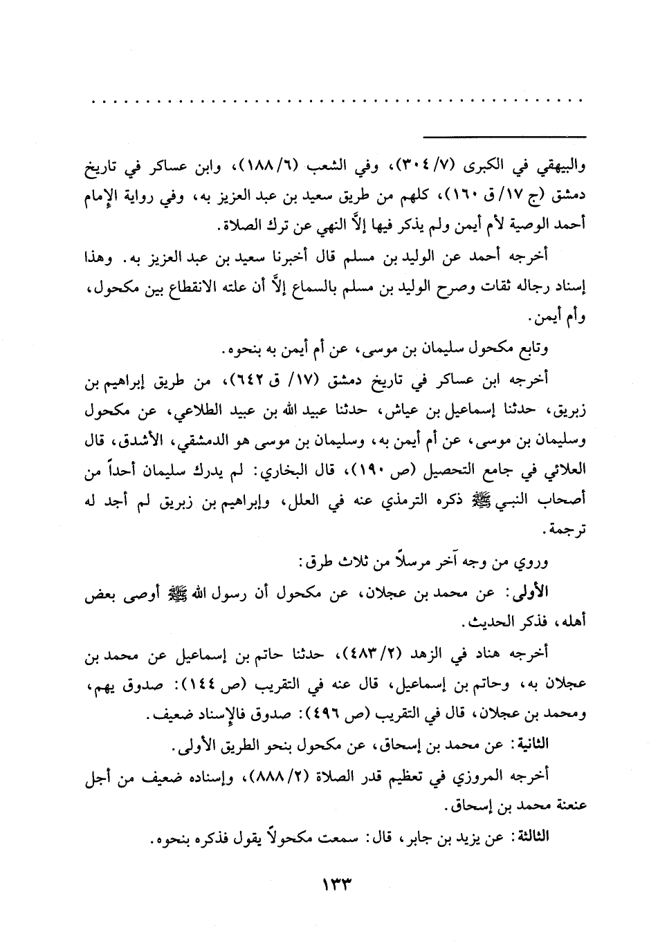 أخرجه أحمد عن الوليد بن مسلم قال أخبرنا سعيد بن عبد العزيز به. وهذا إسناد رجاله ثقات وصرح الوليد بن مسلم بالسماع إلَّا أن علته الانقطاع بين مكحول، وأم أيمن.