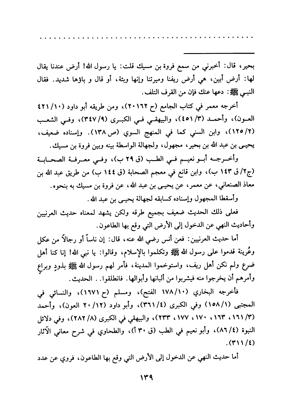 أخرجه معمر في كتاب الجامع (ح 20162)، ومن طريقه أبو داود (10/ 421 العون)، وأحمد (3/ 451)، والبيهقي في الكبرى (9/ 347)، وفي الشعب (2/ 125)، وابن السني كما في المنهج السوي (ص 138). وإسناده ضعيف، يحيى بن عبد الله بن بحير، مجهول، ولجهالة الواسطة بينه وبين فروة بن مسيك.