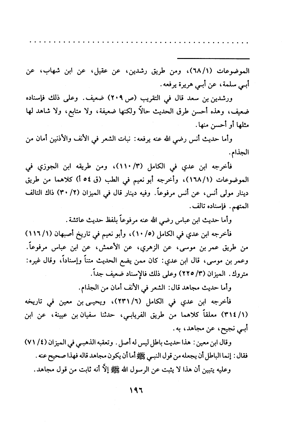 وأما حديث مجاهد قال: الشعر في الأنف أمان من الجذام.