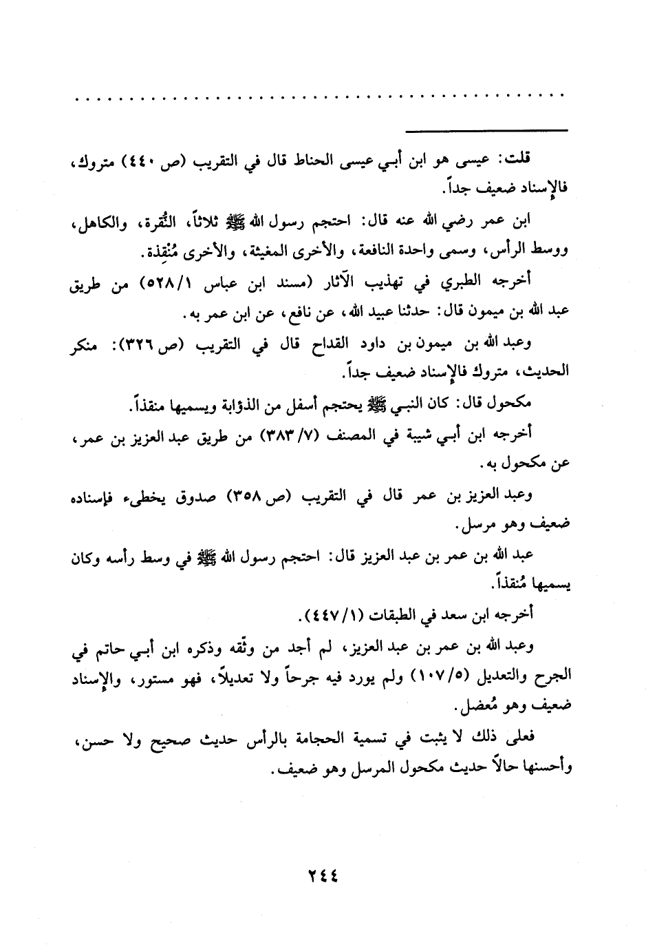 فعلى ذلك لايثبت في تسمية الحجامة بالرأس حديث صحيح ولا حسن، وأحسنها حالًا حديث مكحول المرسل وهو ضعيف.