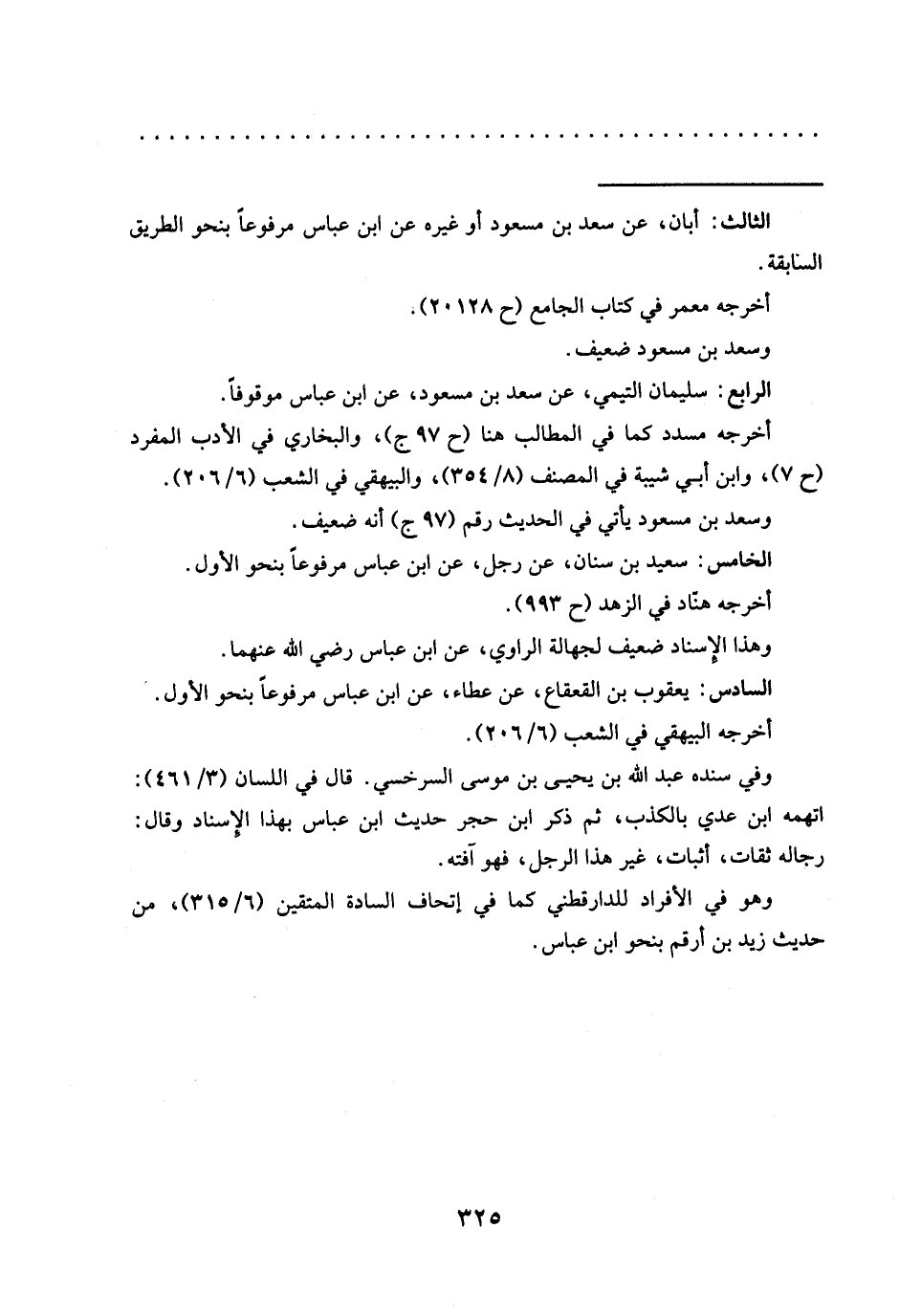 أخرجه مسدّد كما في المطالب هنا (ح 97 ج)، والبخاري في الأدب المفرد (ح7)، وابن أبي شيبة في المصنف (8/ 354)، والبيهقي في الشعب (6/ 206).