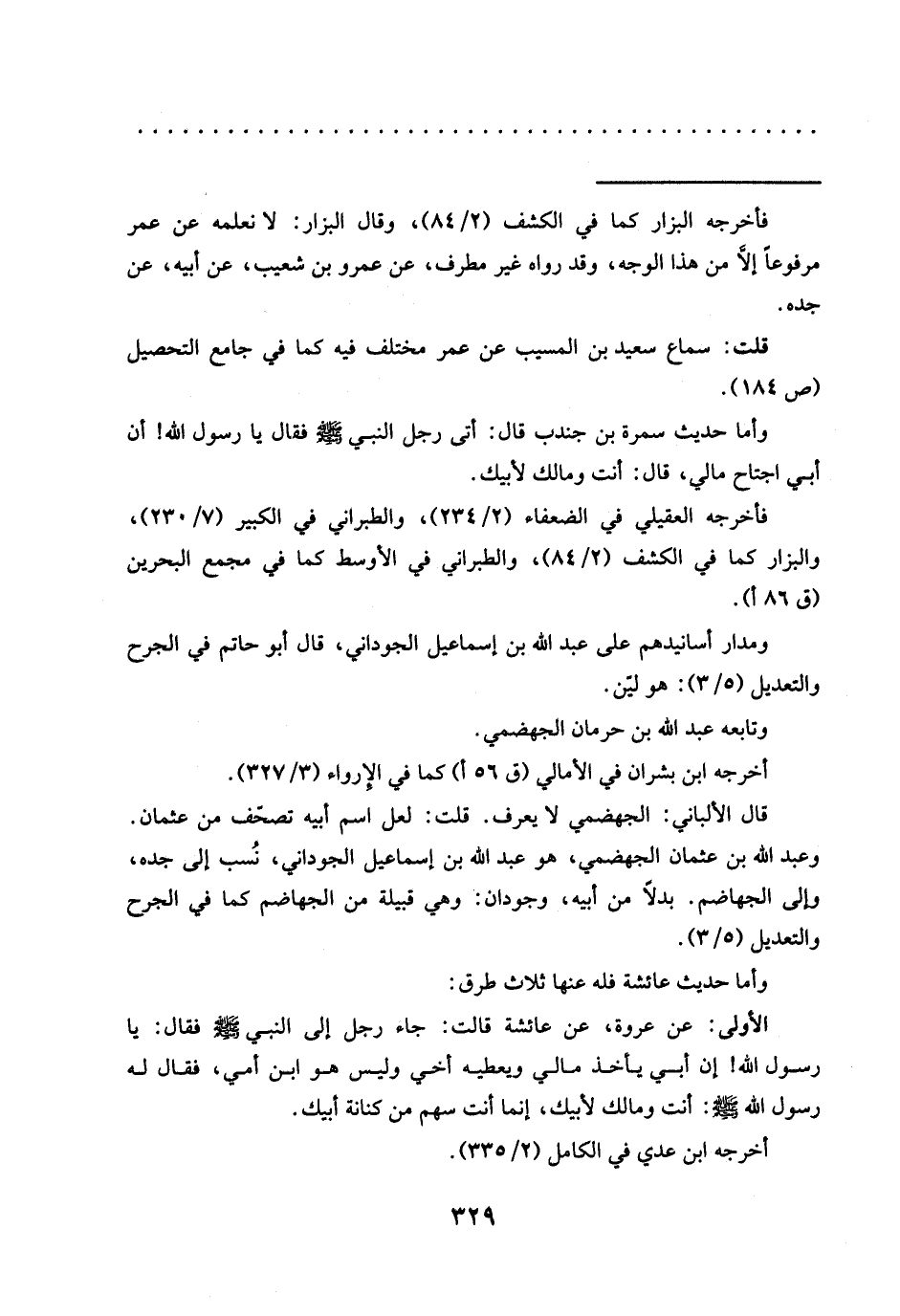 = فأخرجه البزار كما في الكشف (2/ 84)، وقال البزّار: لا نعلمه عن عمر مرفوعًا إلَّا من هذا الوجه، وقد رواه غير مطرف، عَنْ عَمْرِو بْنِ شُعَيْبٍ، عَنْ أَبِيهِ، عَنْ جده.