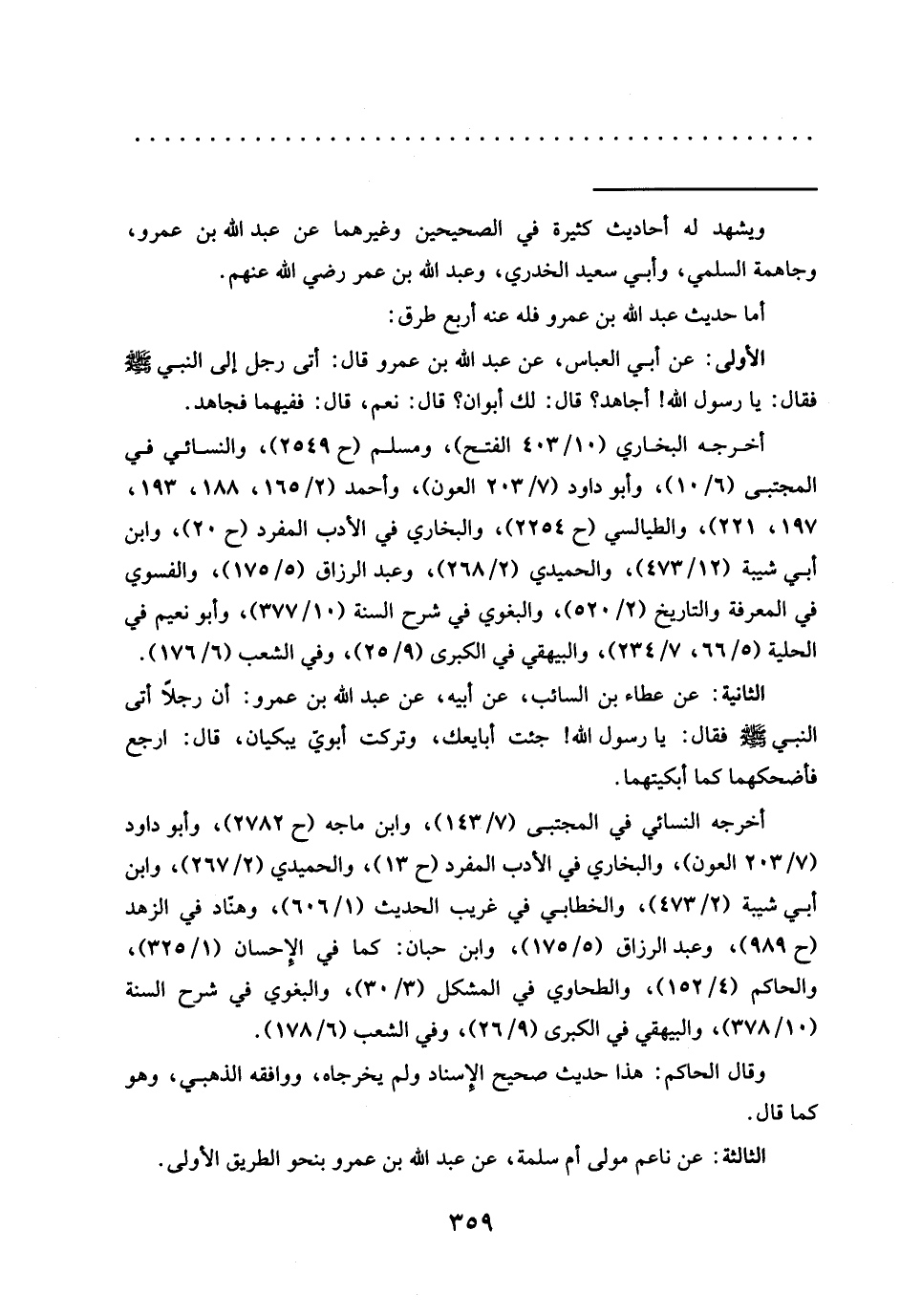 = ويشهد له أحاديث كثيرة في الصحيحين وغيرهما عن عبد الله بن عمرو، وجاهمة السلمي، وأبي سعيد الخدري، وعبد الله بن عمر رضي الله عنهم.