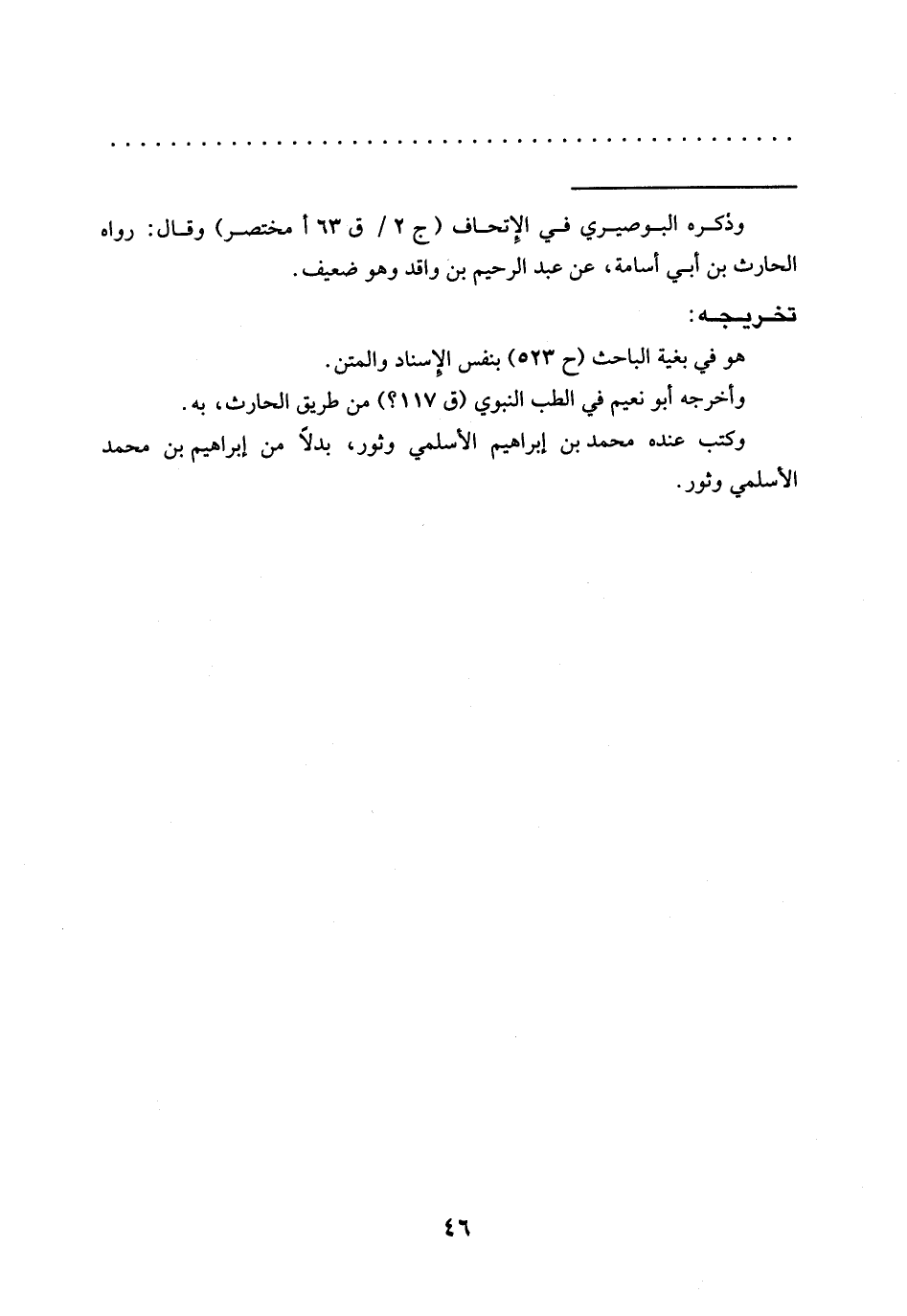 = وذكره البوصيري في الإِتحاف (ج 2/ ق 63 أمختصر) وقال: رواه الحارث بن أبي أسامة، عن عبد الرحيم بن واقد وهو ضعيف.