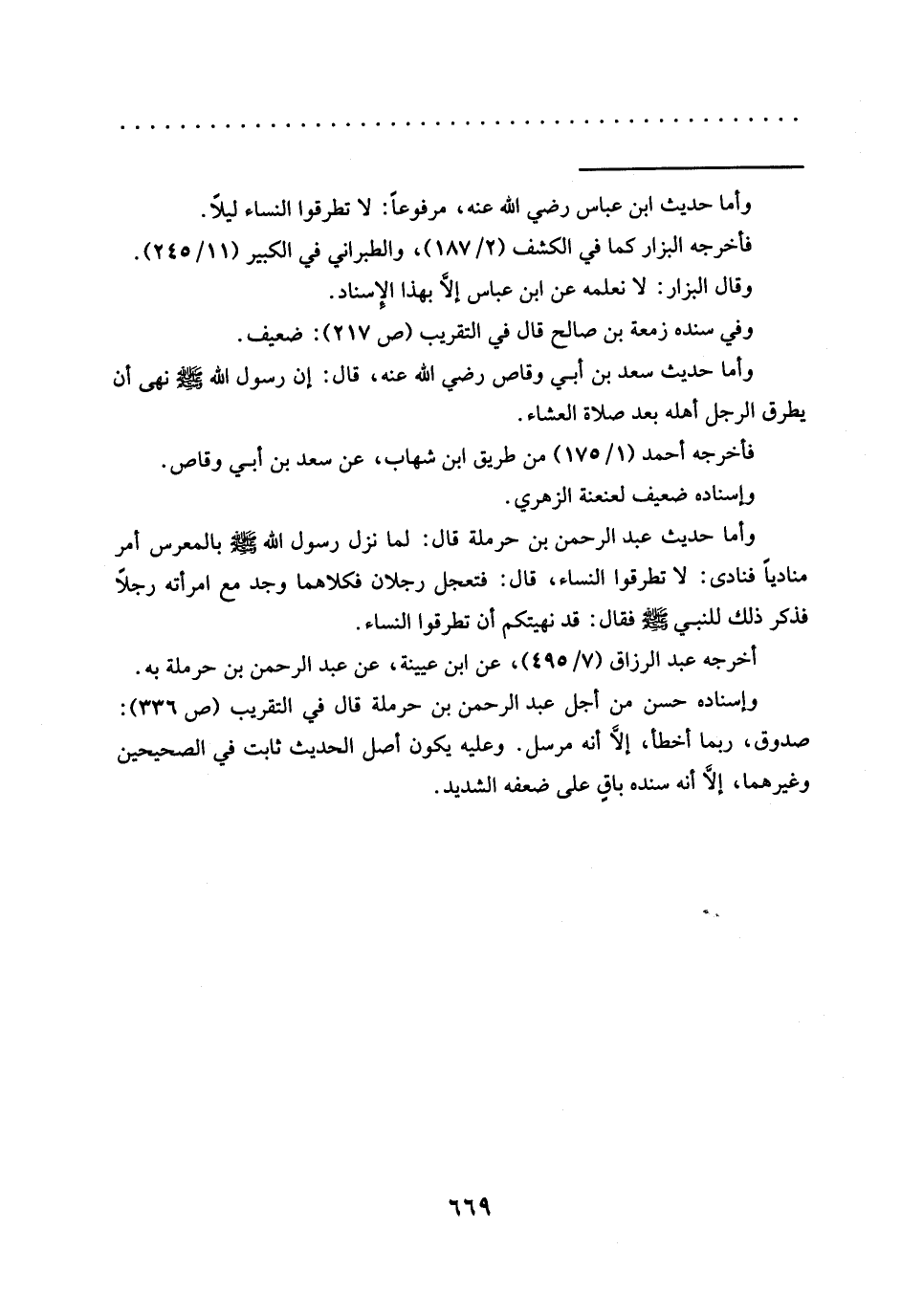 = وأما حديث ابن عباس رضي الله عنه، مرفوعًا: لا تطرقوا النساء ليلًا.