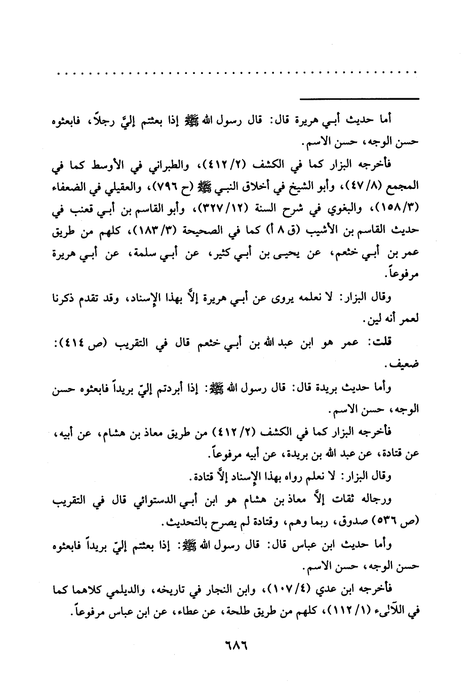 وأما حديث ابْنِ عَبَّاسٍ قَالَ: قَالَ رَسُولُ اللَّهِ -صَلَّى الله عليه وسلم-: إذا بعثتم إليّ بريدًا فابعثوه حسن الوجه، حسن الاسم.