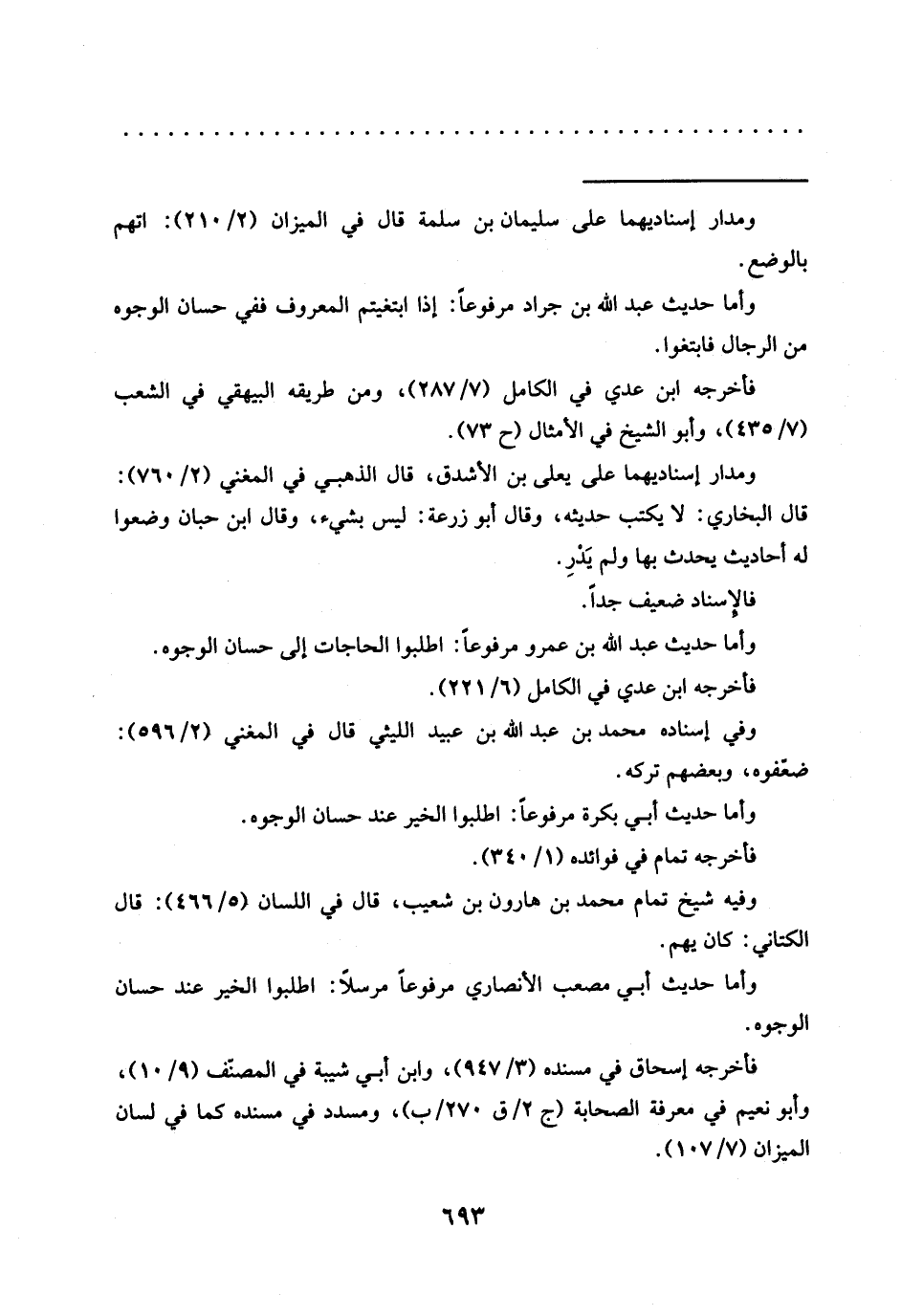 وأما حديث عبد الله بن عمرو مرفوعًا: اطلبوا الحاجات إلى حسان الوجوه.