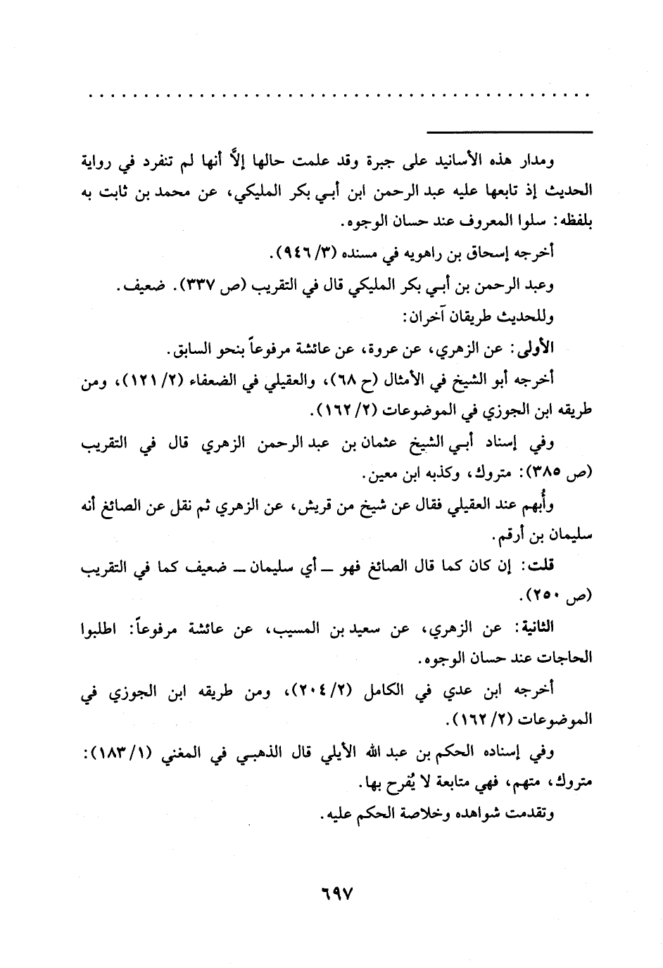الثانية: عَنِ الزُّهْرِيِّ، عَنْ سَعِيدِ بْنِ الْمُسَيِّبِ، عَنْ عائشة مرفوعًا: اطلبوا الحاجات عند حسان الوجوه.