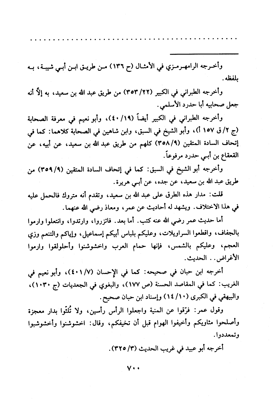 وأخرجه الطبراني في الكبير أيضًا (19/ 40)، وأبو نعيم في معرفة الصحابة (ج 2/ ق 1157)، وأبو الشيخ في السبق، وابن شاهين في الصحابة كلاهما: كما في إتحاف السادة المتقين (9/ 358) كلهم من طريق عبد الله بن سعيد، عن أبيه، عن القعقاع بن أبي حدرد مرفوعًا.