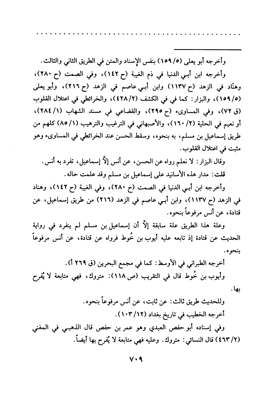 وأخرجه ابن أبي الدنيا في ذم الغيبة (ح 142)، وفي الصمت (ح 280)، وهنّاد في الزهد (ح 1137) وابن أبي عاصم في الزهد (ح 216)، وأبو يعلى (5/ 159)، والبزار: كما في في الكشف (2/ 428)، والخرائطي في اعتلال القلوب (ق 72)، وفي المساوئ (ح 295)، والقضاعي في مسند الشهاب (1/ 284)، أو نعيم في الحلية (2/ 160)، والأصبهاني في الترغيب والترهيب (1/ 85) كلهم من طريق إسماعيل بن مسلم، به بنحوه، وسقط الحسن عند الخرائطي في المساوئ وهو مثبت في اعتلال القلوب.