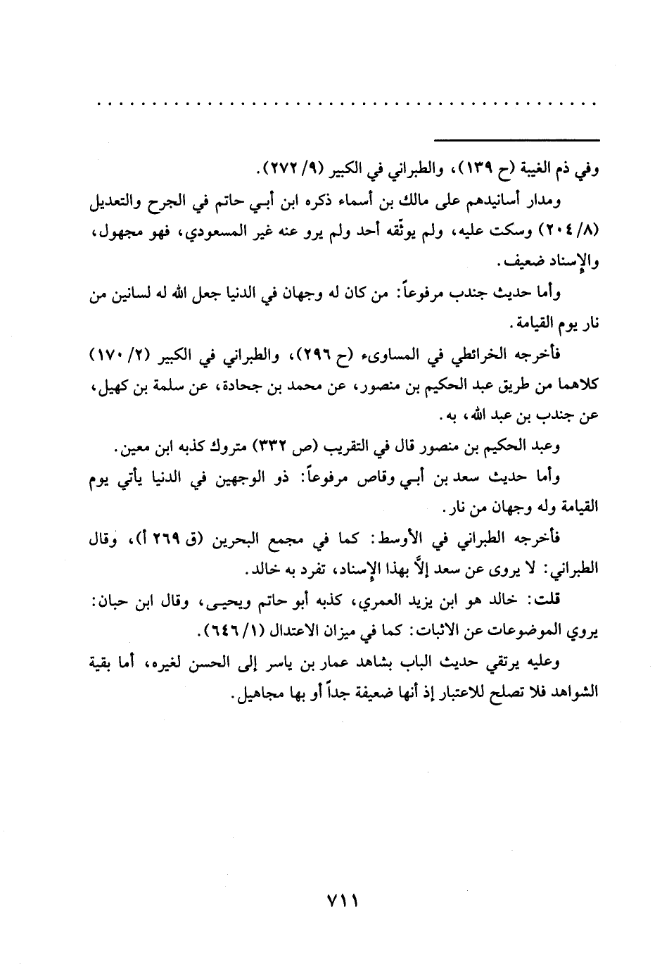 وأما حديث جندب مرفوعًا: من كان له وجهان فِي الدُّنْيَا جَعَلَ اللَّهُ لَهُ لِسَانَيْنِ مِنْ نار يوم القيامة.