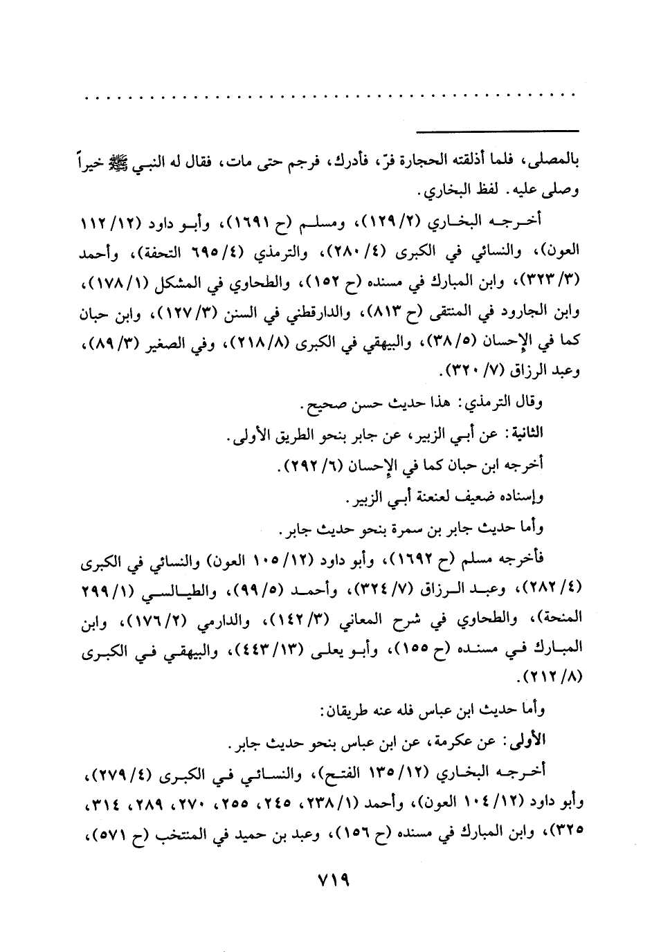 أخرجه البخاري (2/ 129)، ومسلم (ح 1691)، وأبو داود (12/ 112 العون)، والنسائي في الكبرى (4/ 280)، والترمذي (4/ 695 التحفة)، وأحمد (3/ 323)، وابن المبارك في مسنده (ح 152)، والطحاوي في المشكل (1/ 178)، وابن الجارود في المنتقى (ح 813)، والدارقطني في السنن (3/ 127)، وابن حبّان كما في الإحسان (5/ 38)، والبيهقي في الكبرى (8/ 218)، وفي الصغير (3/ 89)، وعبد الرزاق (7/ 320).