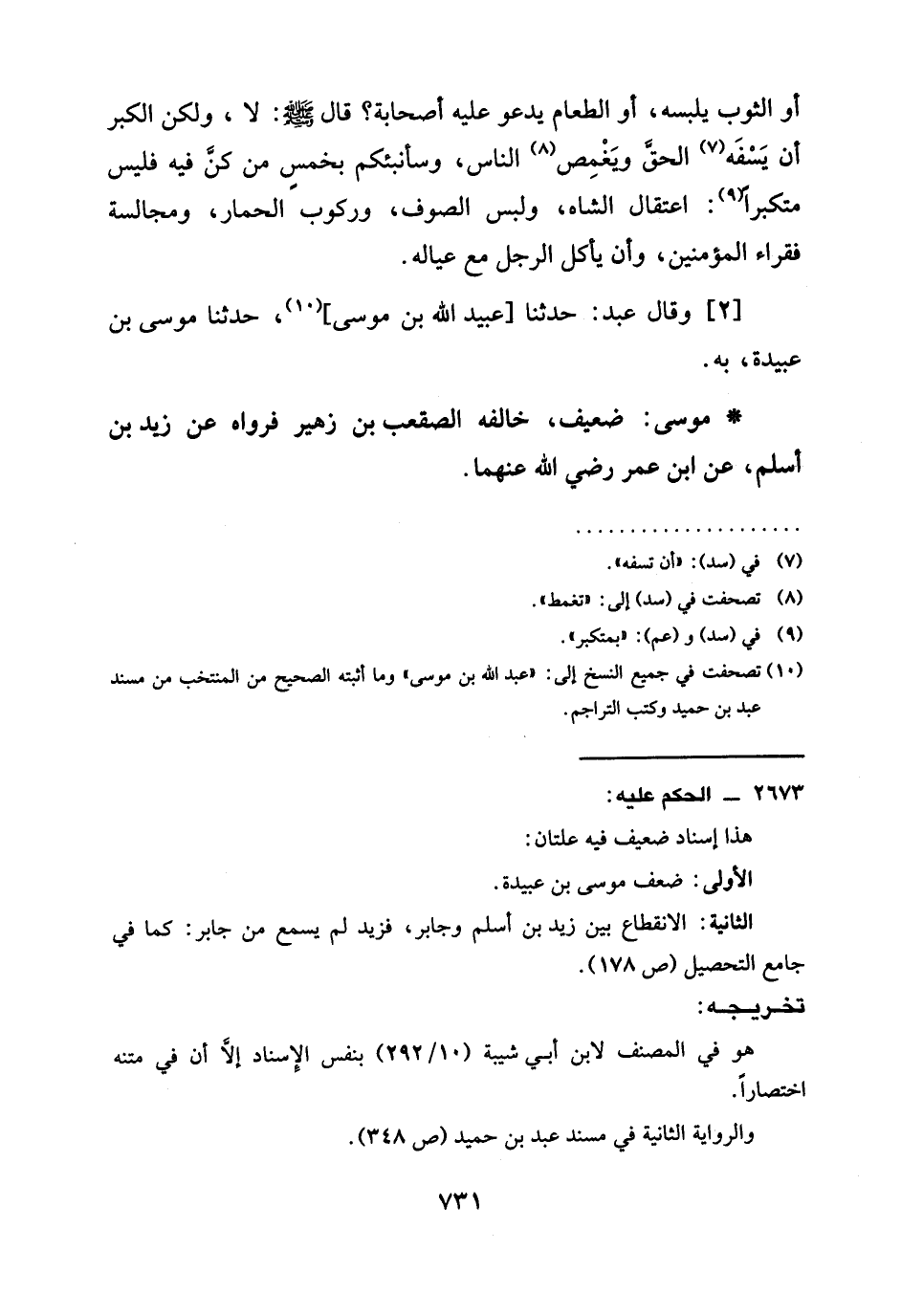 * مُوسَى: ضَعِيفٌ، خَالَفَهُ الصَّقْعَبُ بْنُ زُهَيْرٍ فَرَوَاهُ عَنْ زَيْدِ بْنِ أَسْلَمَ، عن ابن عمر رضي الله عنهما.
