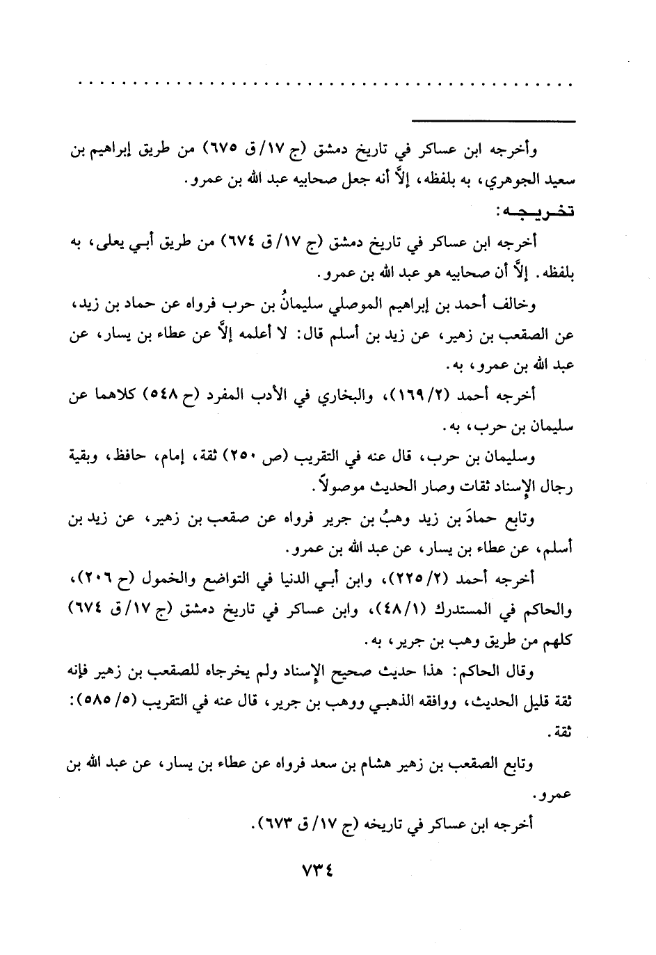 وتابع حمادَ بن زيد وهبُ بن جرير فرواه عن صقعب بن زهير، عَنْ زَيْدِ بْنِ أَسْلَمَ، عَنْ عَطَاءِ بْنِ يسار، عن عبد الله بن عمرو.