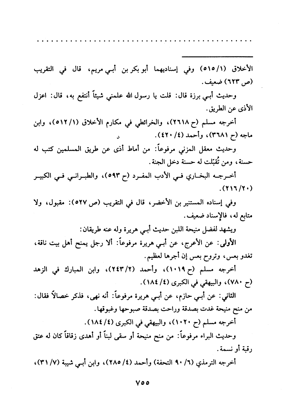 ويشهد لفضل منيحة اللبن حديث أبي هريرة وله عنه طريقان: