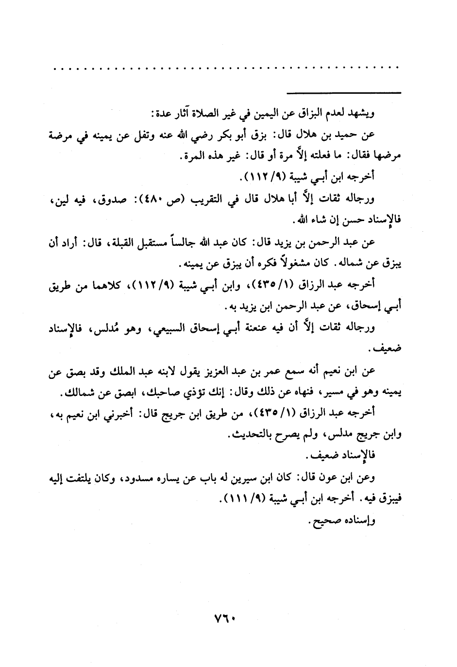 عن عبد الرحمن بن يزيد قال: كان عبد الله جالسًا مستقبل القبلة، قال: أراد أن يبزق عن شماله. كان مشغولًا فكره أن يبزق عن يمينه.