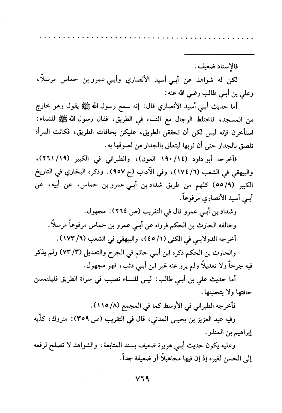 لكن له شواهد عن أبي أسيد الأنصاري وأبي عمرو بن حماس مرسلًا، وَعَلِيُّ بْنُ أَبِي طَالِبٍ رَضِيَ اللَّهُ عَنْهُ: