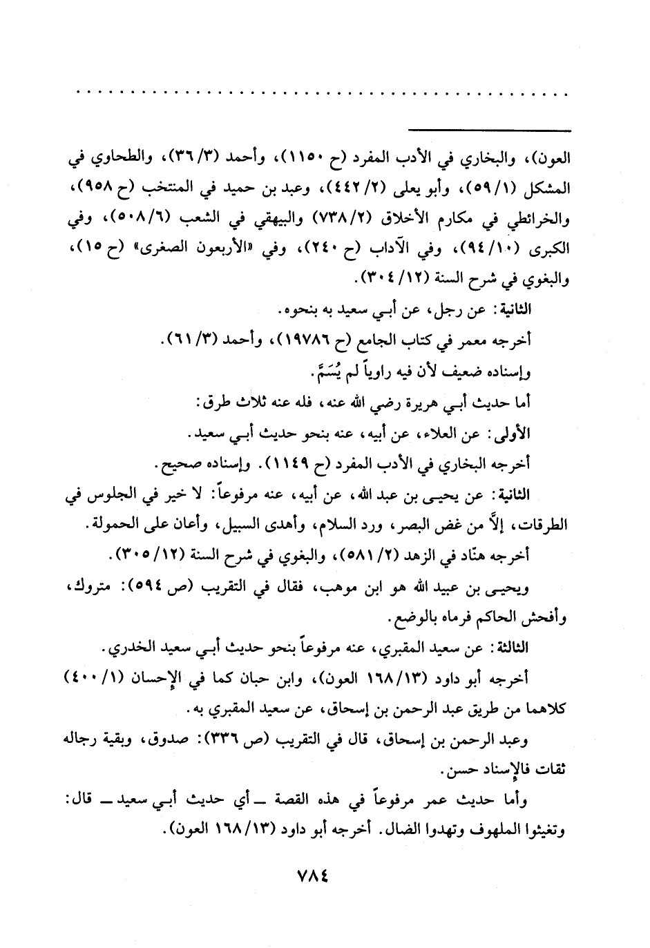 = العون)، والبخاري في الأدب المفرد (ح 1150)، وأحمد (3/ 36)، والطحاوي في المشكل (1/ 59)، وأبو يعلى (2/ 442)، وعبد بن حميد في المنتخب (ح 958)، والخرائطي في مكارم الأخلاق (2/ 738) والبيهقي في الشعب (8/ 506)، وفي الكبرى (10/ 94)، وفي الآداب (ح 240)، وفي "الأربعون الصغرى" (ح 15)، والبغوي في شرح السنة (12/ 304).