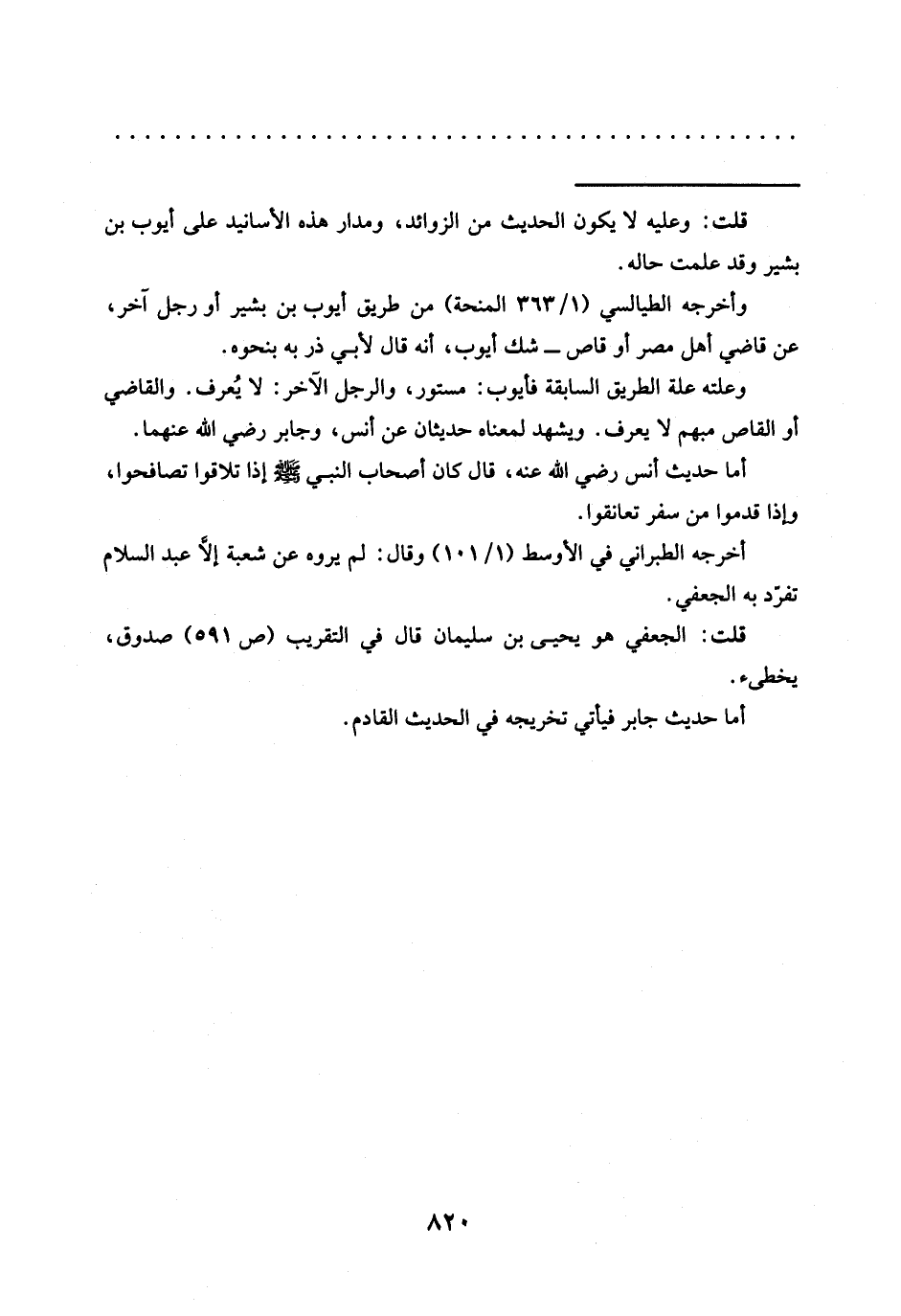 = قلت: وعليه لا يكون الحديث من الزوائد، ومدار هذه الأسانيد على أيوب بن بشير وقد علمت حاله.