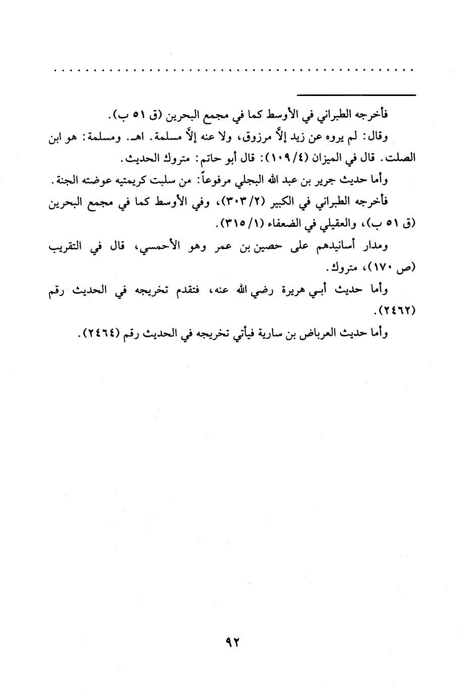 وأما حديث جرير بن عبد الله البجلي مرفوعًا: من سلبت كريمتيه عوضته الجنة.