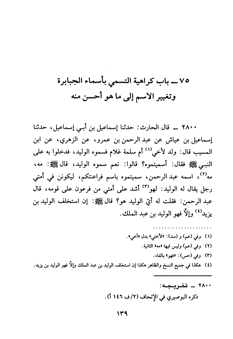 75 - بَابُ كَرَاهِيَةِ التَّسَمِّي بِأَسْمَاءِ الْجَبَابِرَةِ وَتَغْيِيرِ الِاسْمِ إِلَى مَا هُوَ أَحْسَنُ مِنْهُ