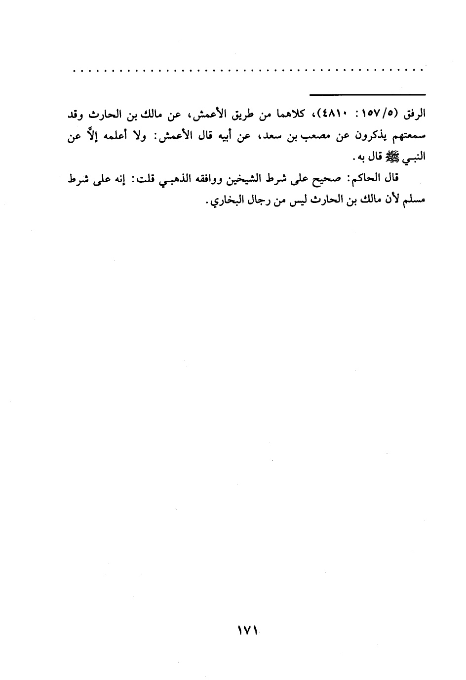 قال الحاكم: صحيح على شرط الشيخين ووافقه الذهبي قلت: إنه على شرط مسلم لأنّ مالك بن الحارث ليس من رجال البخاريُّ.