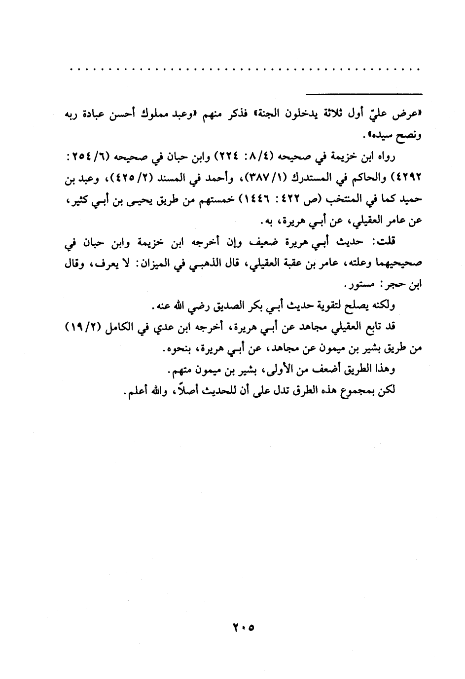 = "عرض عليّ أول ثلاثة يدخلون الجنة" فذكر منهم "وعبد مملوك أحسن عبادة ربه ونصح سيده".