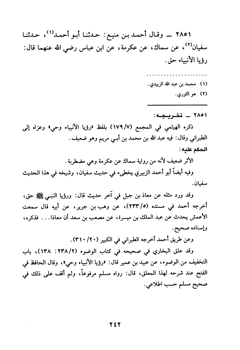 2851 - وقال أَحْمَدُ بْنُ مَنِيعٍ: حَدَّثَنَا أَبُو أَحْمَدَ، حدثنا سُفْيَانُ، عَنْ سِمَاكٍ، عَنْ عِكْرِمَةَ، عَنِ ابن عباس رَضِيَ الله عَنْهما قَالَ: §رُؤْيَا الْأَنْبِيَاءِ حَقٌّ.