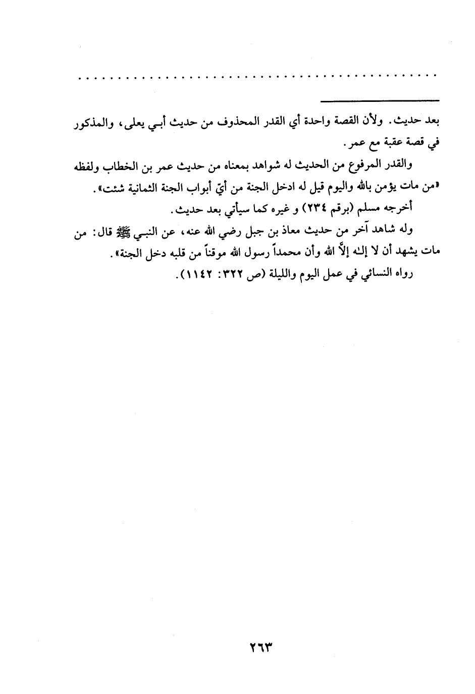 وله شاهد آخر من حديث مُعَاذِ بْنِ جَبَلٍ رَضِيَ اللَّهُ عَنْهُ، عَنْ النَّبِيِّ -صَلَّى اللَّهُ عَلَيْهِ وَسَلَّمَ- قَالَ: من مات يشهد أَنْ لَا إِلَهَ إِلَّا اللَّهُ وَأَنَّ مُحَمَّدًا رسول الله موقنًا من قلبه دخل الجنة".