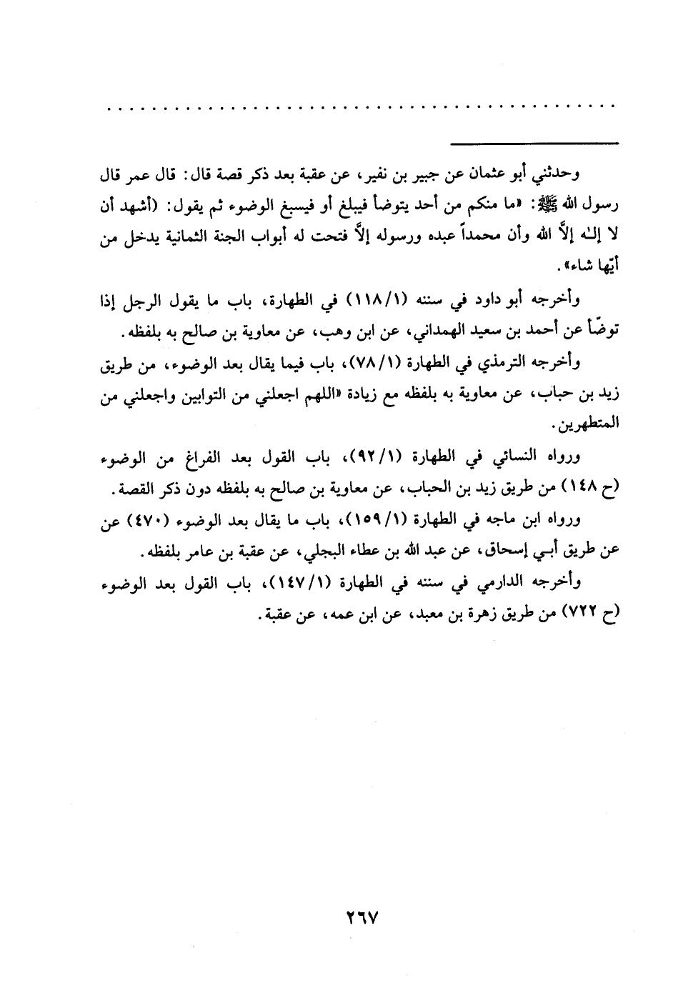 وأخرجه الدارمي في سننه في الطهارة (1/ 147)، باب القول بعد الوضوء (ح 722) من طريق زهرة بن معبد، عن ابن عمه، عن عقبة.