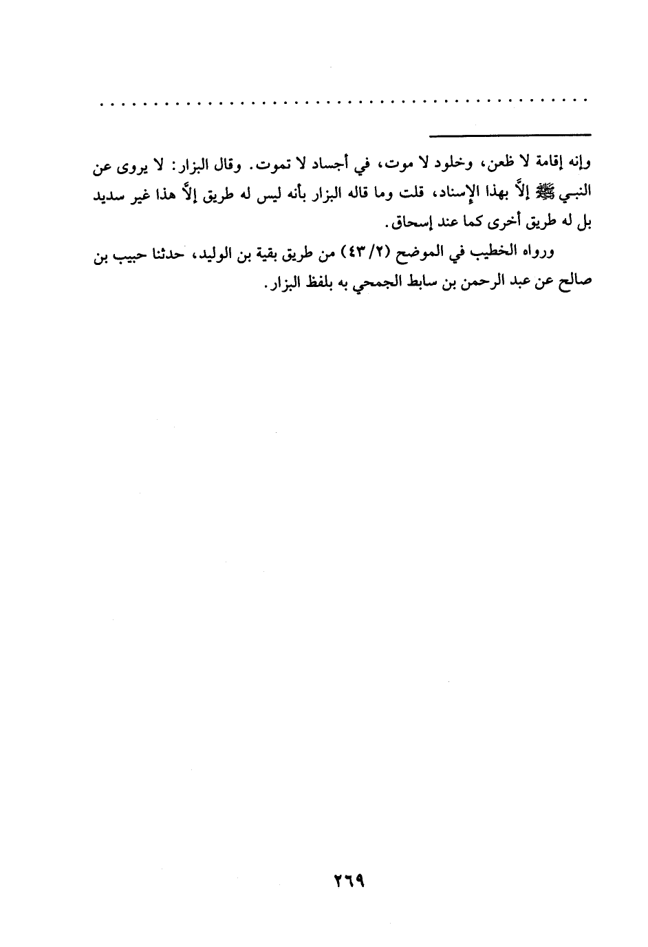 ورواه الخطيب في الموضح (2/ 43) من طريق بقية بن الوليد، حدّثنا حبيب بن صالح عن عبد الرحمن بن سابط الجمحي به بلفظ البزّار.