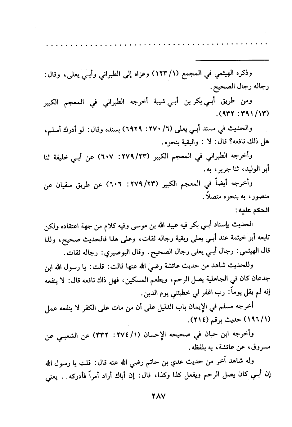 والحديث في مسند أبي يعلى (6/ 270: 6929) بسنده وقال: لو أدرك أسلم، هل ذلك نافعه؟ قال: لا: والبقية بنحوه.