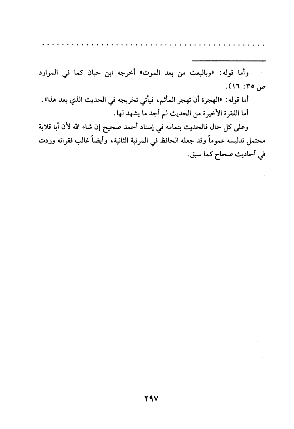 = وأما قوله: "وبالبعث من بعد الموت" أخرجه ابن حبّان كما في الموارد ص 16:35).