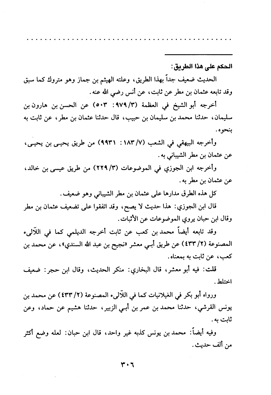 قال ابن الجوزي: هذا حديث لا يصح، وقد اتفقوا على تضعيف عثمان بن مطر وقال ابن حبّان يروي الموضوعات عن الأثبات.