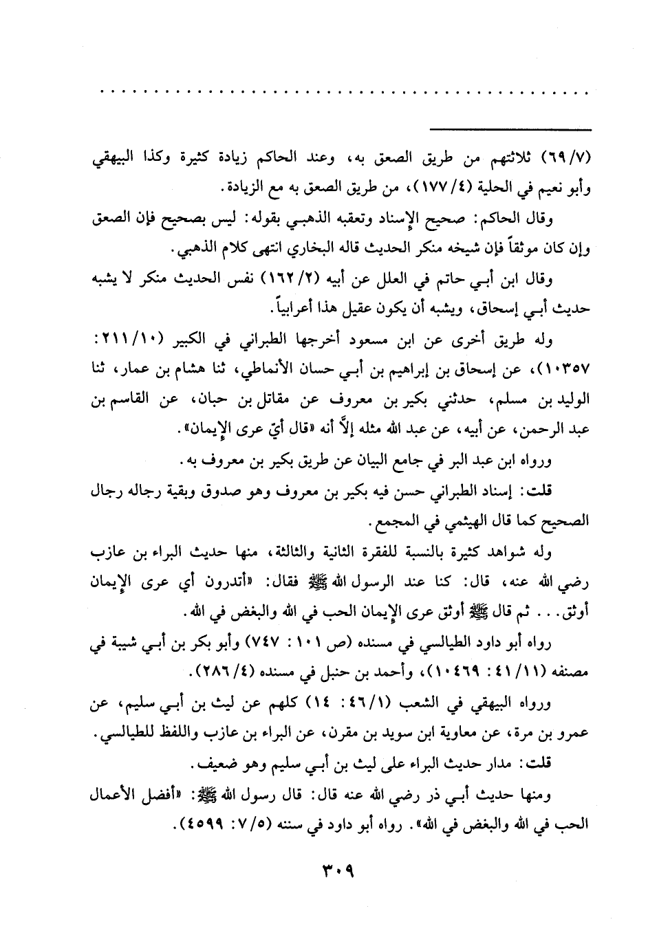 وله شواهد كثيرة بالنسبة للفقرة الثانية والثالثة، منها حديث الْبَرَاءِ بْنِ عَازِبٍ رَضِيَ اللَّهُ عَنْهُ، قَالَ: كنا عند الرسول الله -صَلَّى اللَّهُ عَلَيْهِ وَسَلَّمَ- فَقَالَ: "أَتَدْرُونَ أَيُّ عرى الإيمان أوثق ... ثم قال -صلى الله عليه وسلم- أوثق عرى الإيمان الحب في الله والبغض في الله.