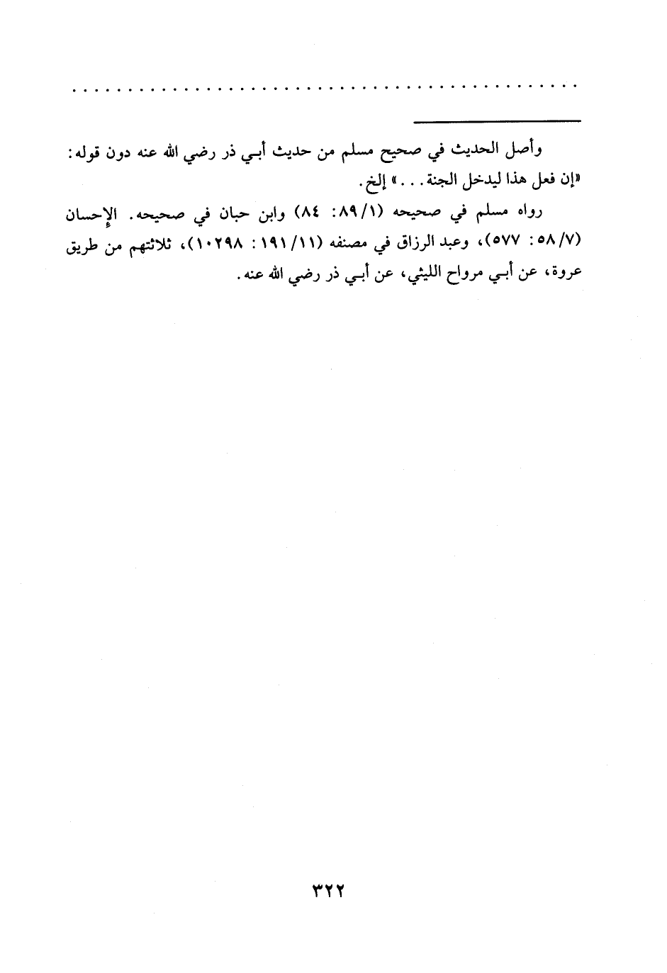 رواه مسلم في صحيحه (1/ 89: 84) وابن حبّان في صحيحه. الإِحسان (7/ 58: 577)، وعبد الرزاق في مصنفه (11/ 191: 10298)، ثلاثتهم من طريق عروة، عن أبي مرواح الليثي، عن أبي ذر رضي الله عنه.