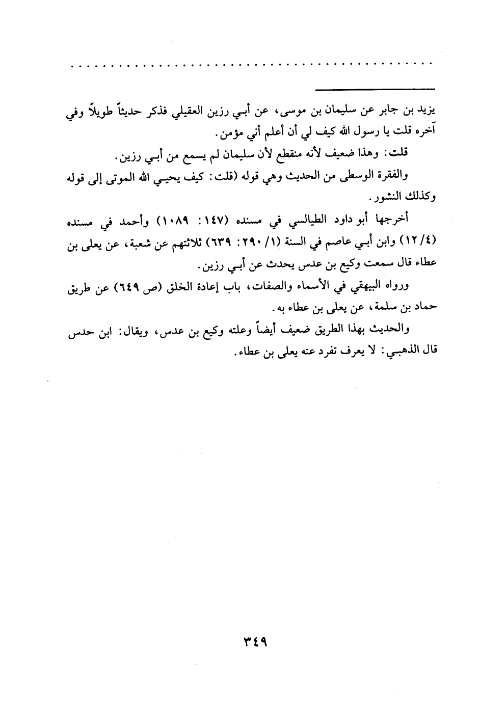 قلت: وهذا ضعيف لأنه منقطع لأنّ سليمان لم يسمع من أبي رزين.