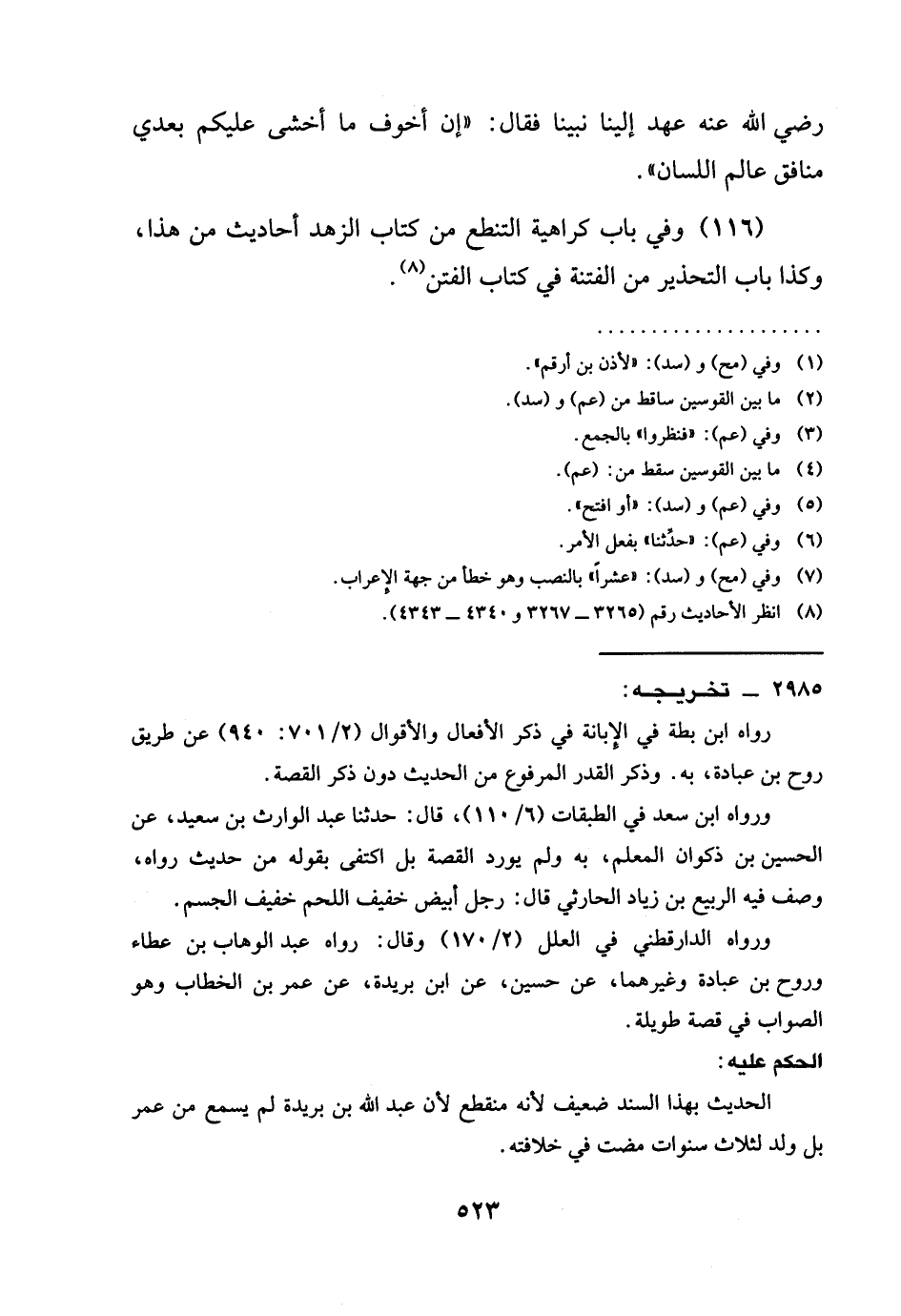 (116) وفي باب كراهية التَّنَطُّعِ مِنْ كِتَابِ الزُّهْدِ أَحَادِيثُ مِنْ هَذَا، وَكَذَا بَابُ التَّحْذِيرِ مِنَ الْفِتْنَةِ فِي كِتَابِ الفتن (¬1).