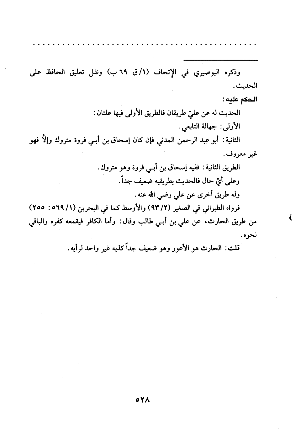قلت: الحارث هو الأعور وهو ضعيف جدًا كذبه غير واحد لرأيه.
