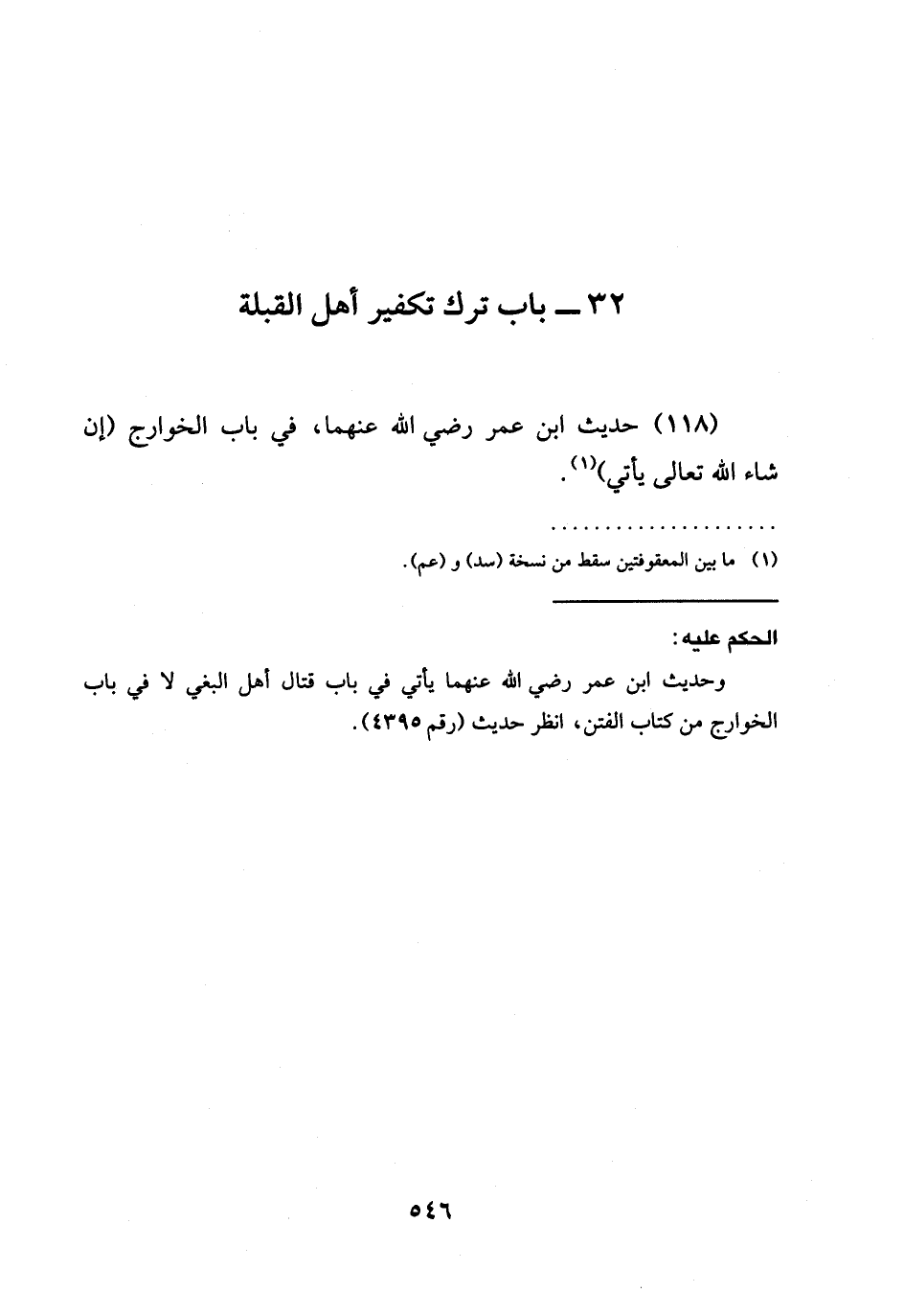 (118) حَدِيثُ ابْنُ عُمَرَ رَضِيَ الله عَنْهُمَا، فِي بَابِ الْخَوَارِجِ (إن شاء الله تَعَالَى يَأْتِي) .