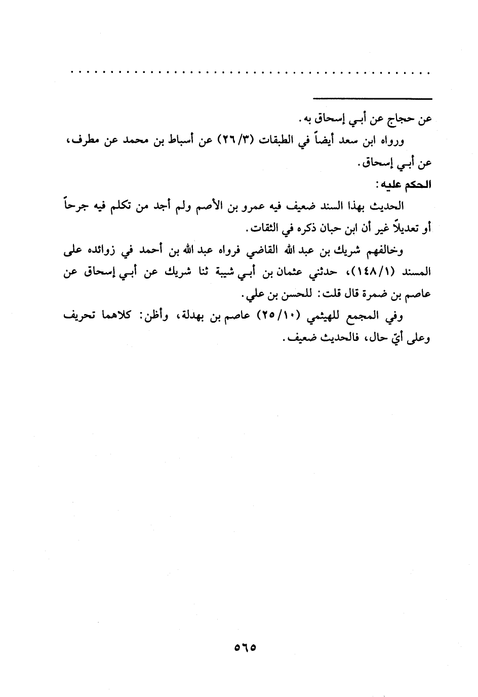 وخالفهم شريك بن عبد الله القاضي فرواه عبد الله بن أحمد في زوائده على المسند (1/ 148)، حدثني عثمان بن أبي شيبة ثنا شريك عَنْ أَبِي إِسْحَاقَ عَنْ عَاصِمِ بْنِ ضَمْرَةَ قال قلت: للحسن بن علي.