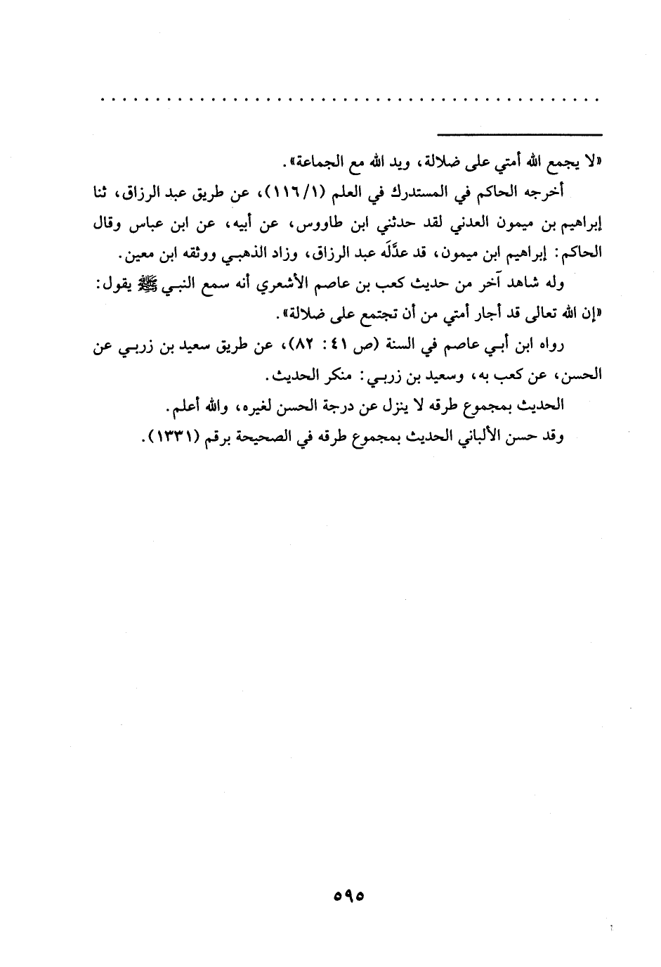 = "لا يجمع الله أمتي على ضلالة، ويد الله مع الجماعة".